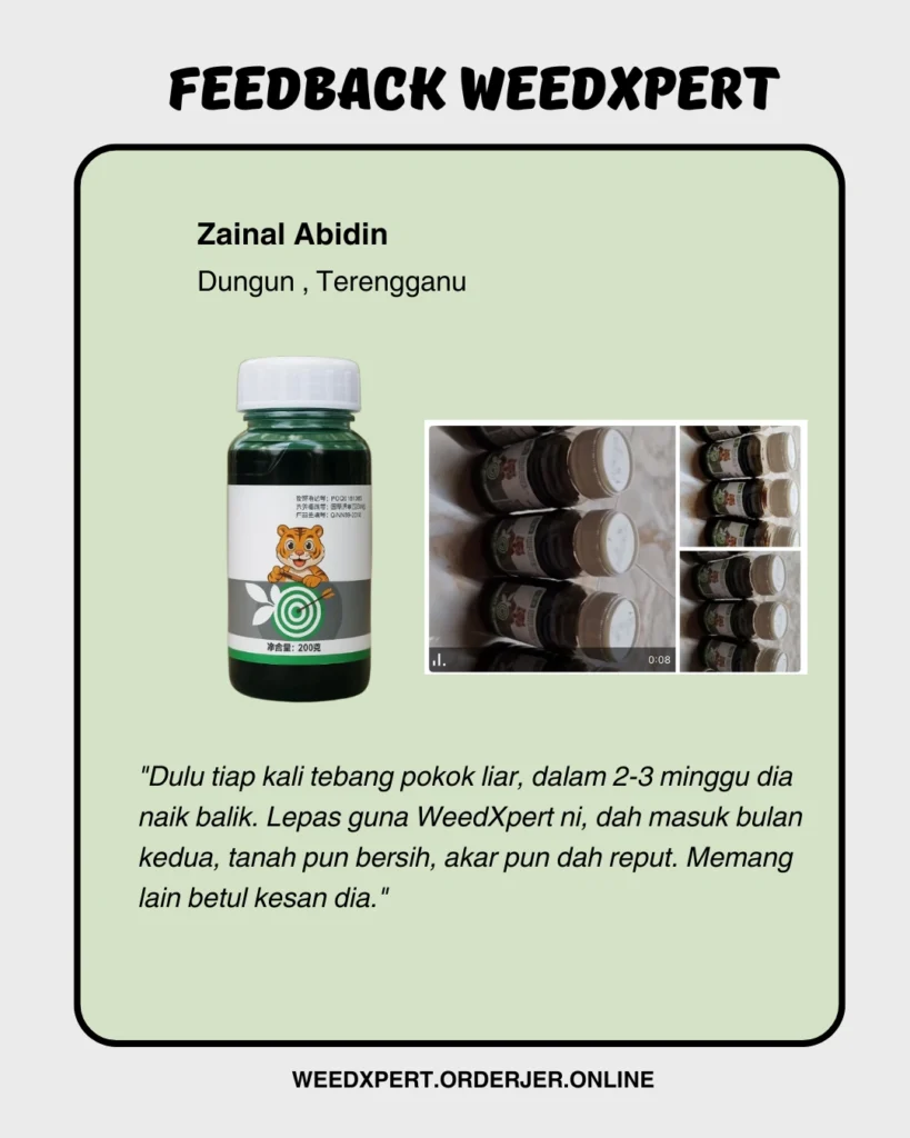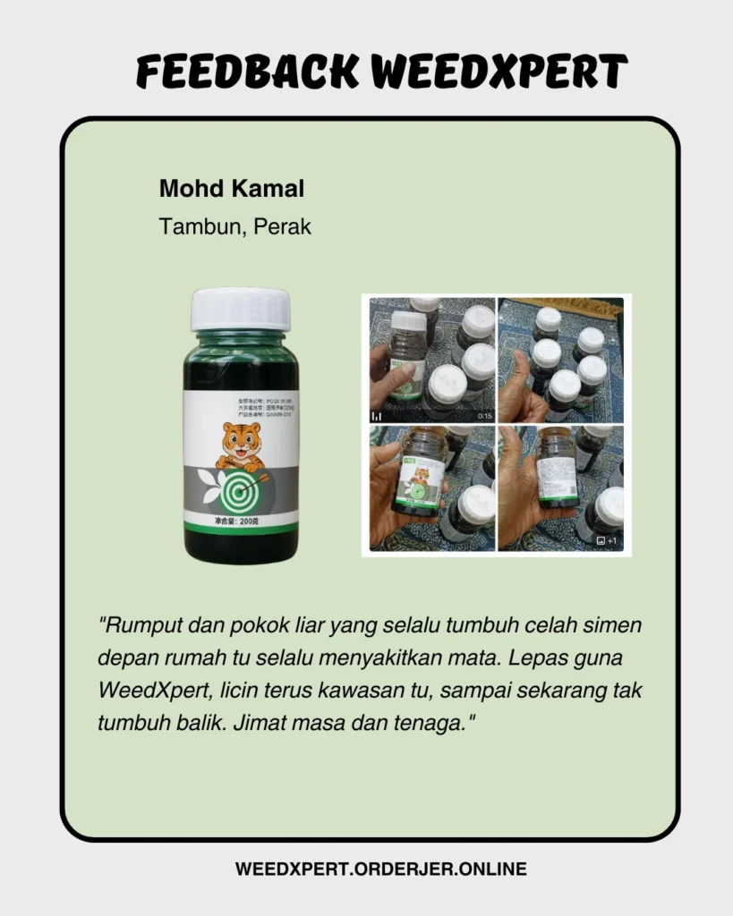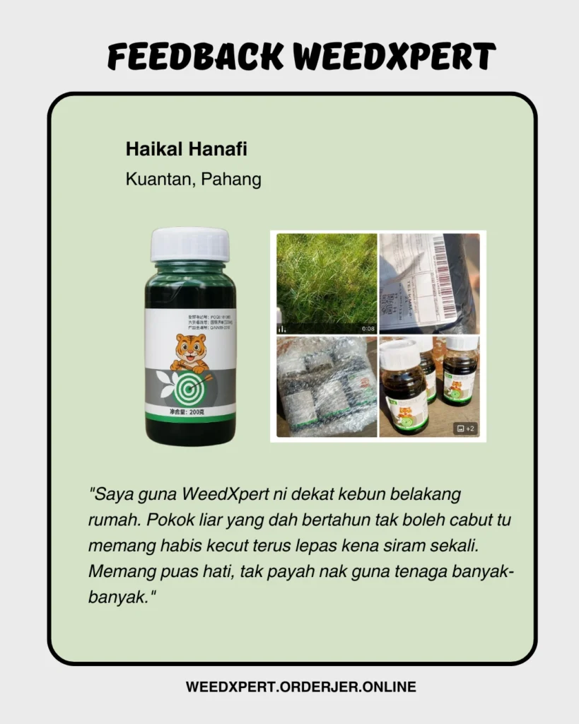 ✅ Hapus Pokok, Lalang & Akar Dengan Mudah Tak perlu tebang atau cabut akar – lebih 5,000 pemilik rumah & kebun telah guna WeedXpert & terbukti berkesan hapuskan tumbuhan degil!